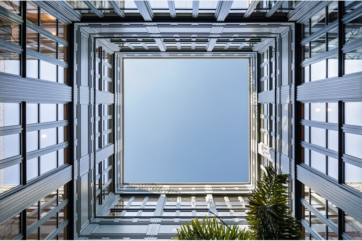On the upper floors, our team of architects has decided to combine 1 or 2 bedroom apartments with penthouses; all of them arranged around the courtyard and with large roof-to-floor windows that allow access to natural light.