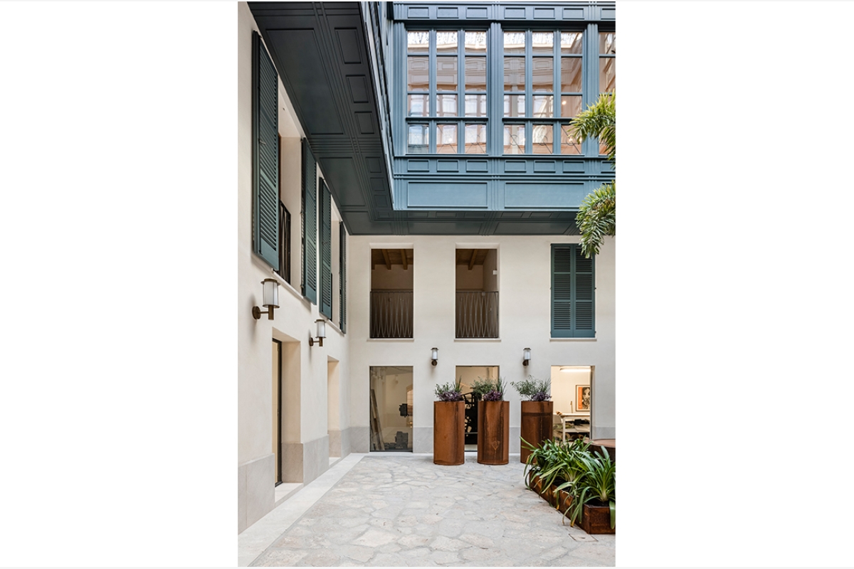 As for the development of the project, on the ground floor is the access to the building, through a medieval-style Mallorcan courtyard, where some details from the beginning of the Renaissance can be found. This in turn, is surrounded by an art gallery.
